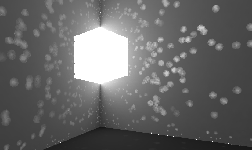 cube-like shape onto the corner. The light patch illuminates the room.